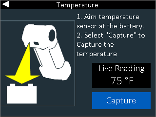 Point the CPX’s temperature sensor (located on the back of the unit) at the battery. Tap Capture.
