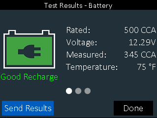 Once the battery test is complete the overall result will be shown along with details on the battery.
