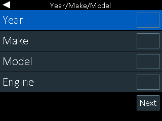 Step 3: Year/Make/Model EntryEnter the Year, Make and Model of the vehicle being tested. Then select the engine type.