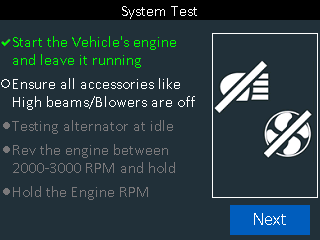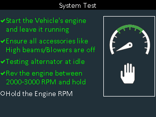 Tap System Test to complete the Starter and Electrical System Testing. See System Test section below
