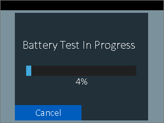 Step 6: Test ProgressThe overall test time using Conductance Profiling is approximately one minute. Due to this test time, it is important to connect the tester clamps as a first step and BEFORE entering the vehicle or battery information so that test time remaining at this point is minimized.