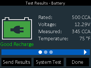 Once the battery test is complete the overall result will be shown along with details on the battery.