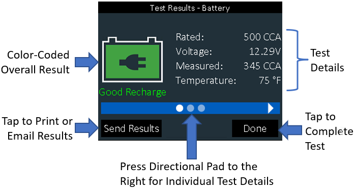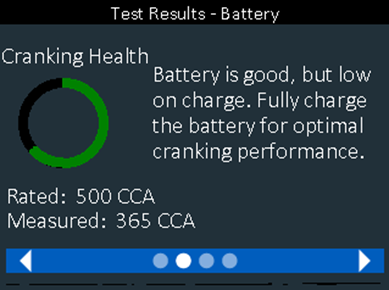 Use the directional pad to scroll to the right and review the Cranking and Reserve Capacity results